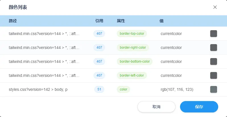 颜色: 该元素相关的CSS颜色定义