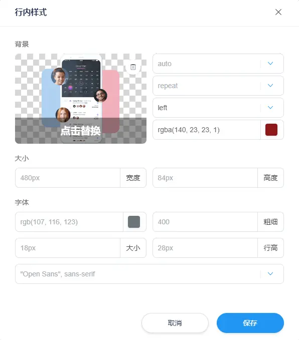 图片: 如果该元素是一张图片, 可以点击更换图片
